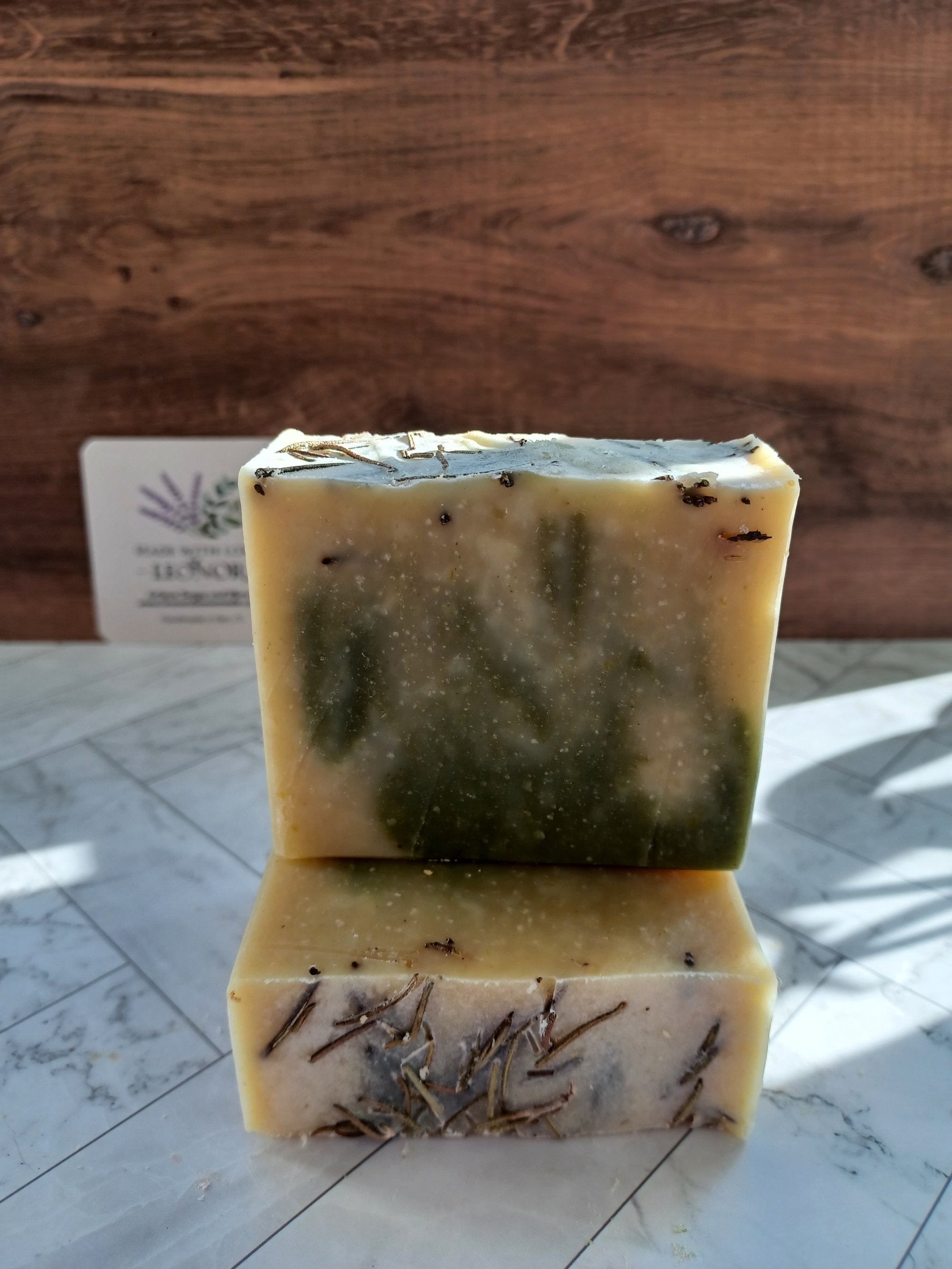 Saponified Ingredients: Coconut, Castor Extra Virgin and Sustainable Palm Oils, Shea Butters, Rosemary and Citronella Herbs, Aloe Vera, Nopal Cactus, Sodium Hydroxide, Distilled Water, Chlorophyll Mica Powder, Fragrance Essential Oils blend.